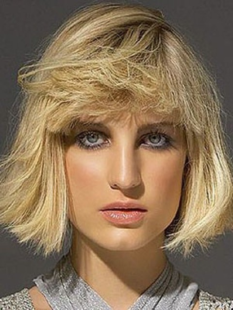 Bob Stil Blond Gerade Kappenlos Echthaar Perücken Mit Dem Pony 10 Inches